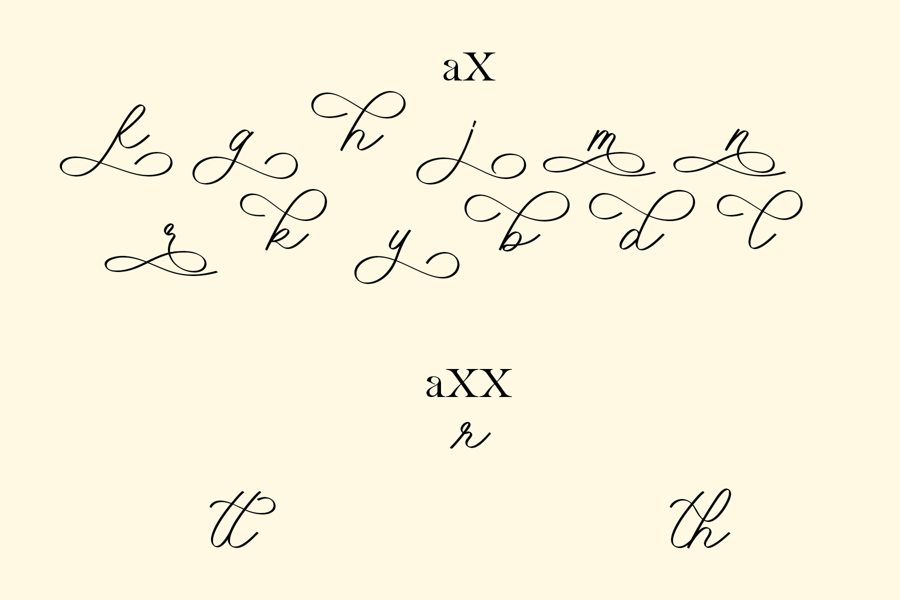 aXXX → Decorative a3 (if available) - To separate ligatures: Insert the shortcut xXx between two characters.