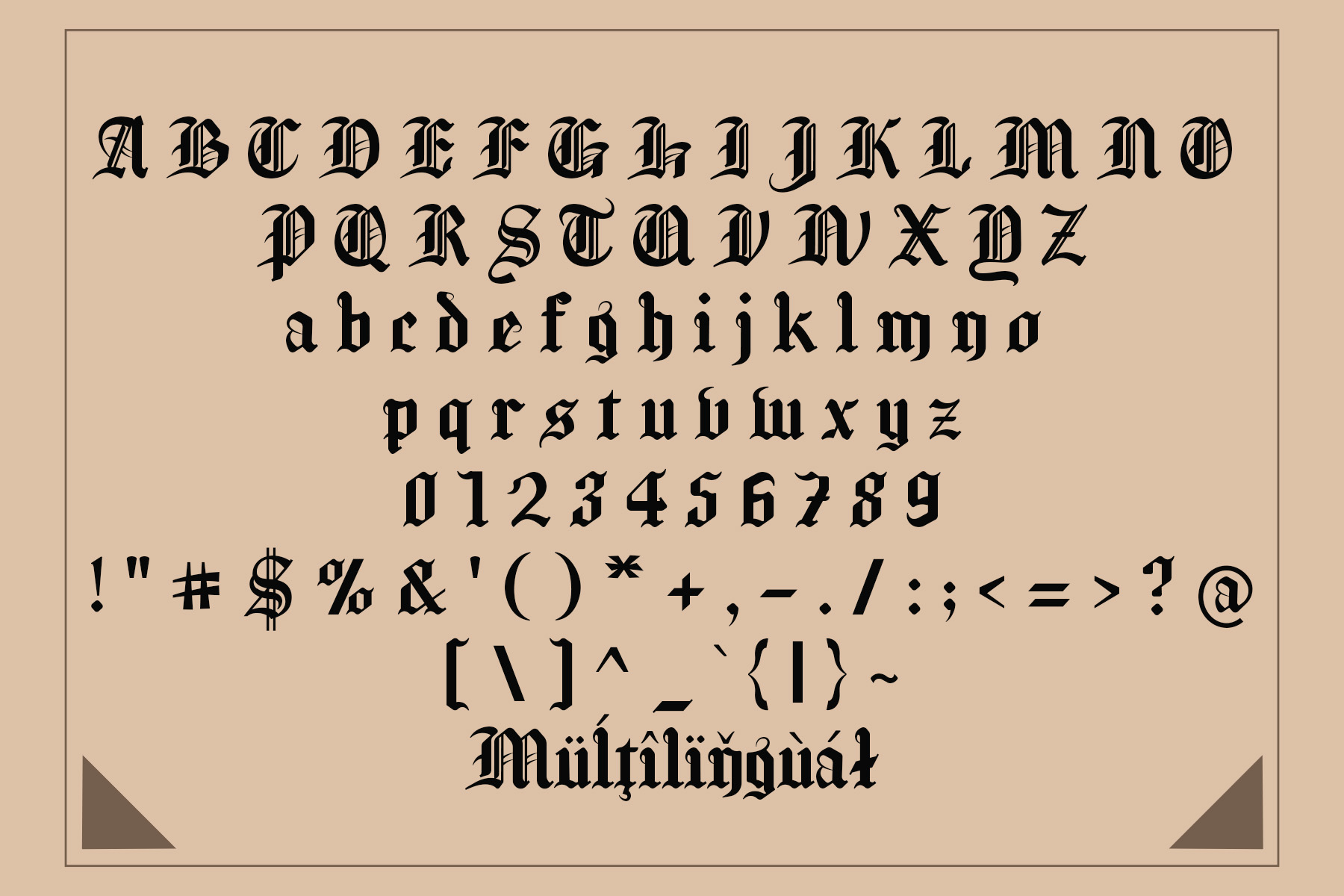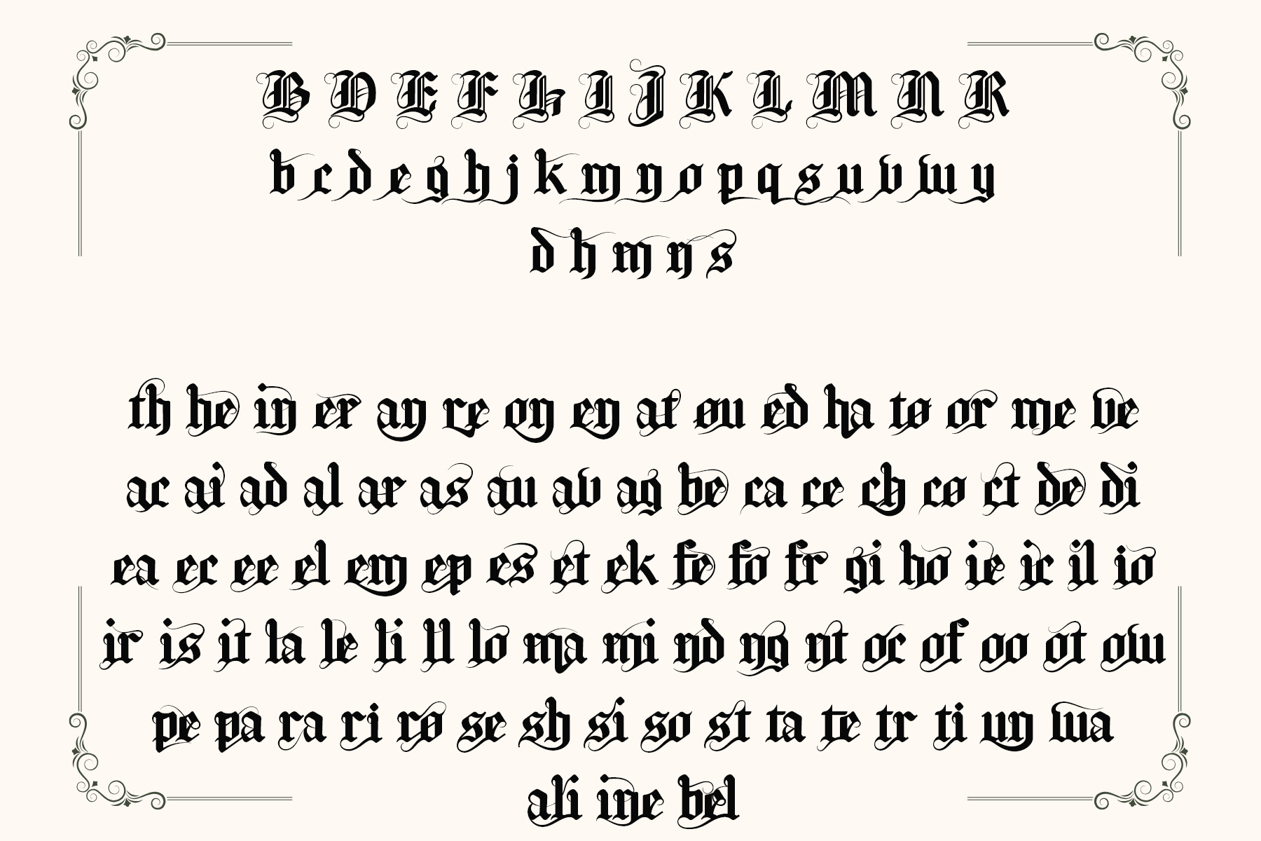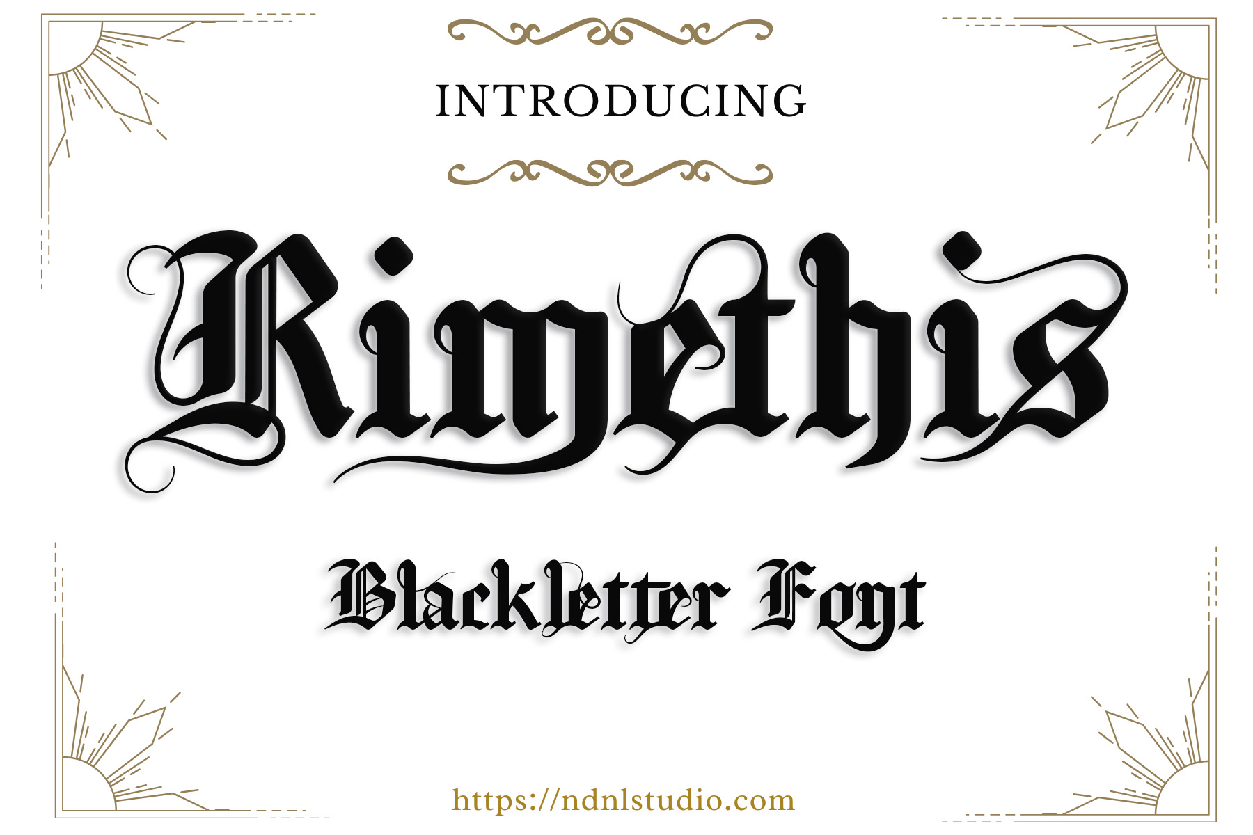 Rimethis is a stunning Blackletter font that embodies the essence of gothic elegance and timeless craftsmanship. With its dramatic curves and sharp edges, it breathes life into an atmosphere of mystery and enchantment — perfect for Halloween, dark-themed branding, horror titles, tattoos, and vintage-style projects. Each letter carries the whisper of old legends and forgotten tales — making Rimethis not just a font, but a story written in ink and darkness.